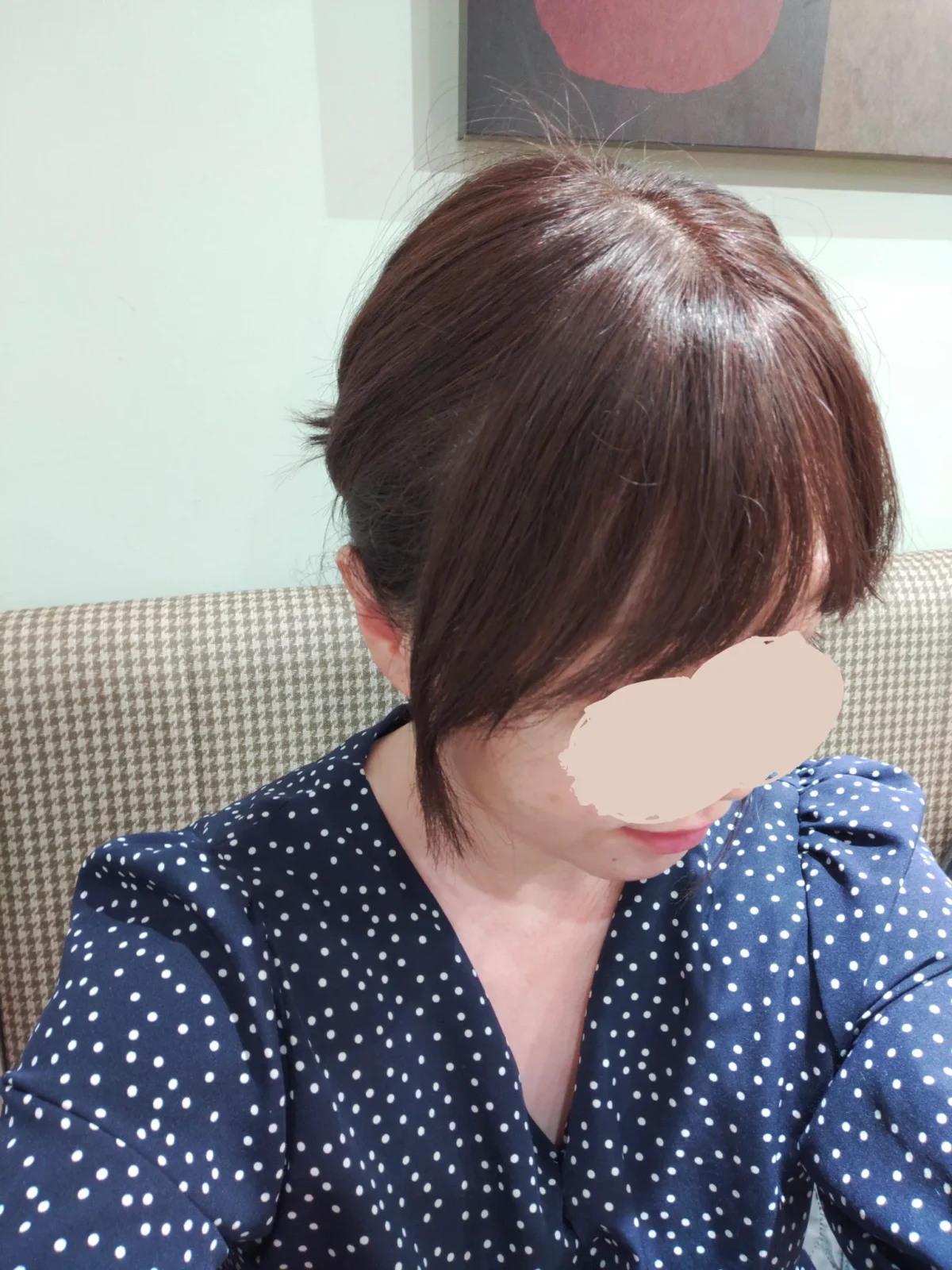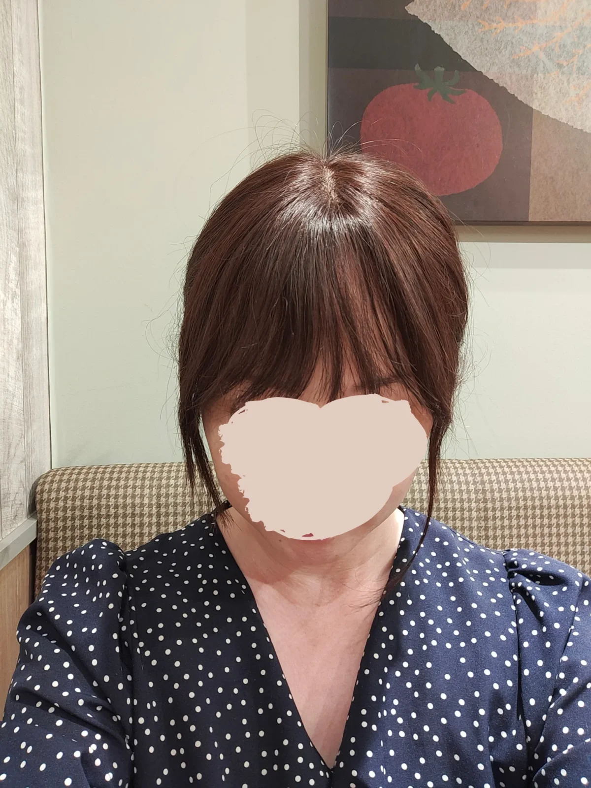前髪なしワンレンスタイルだったヘアピースの雰囲気が、似合せカットによってガラッと変わったことが分かると思います。